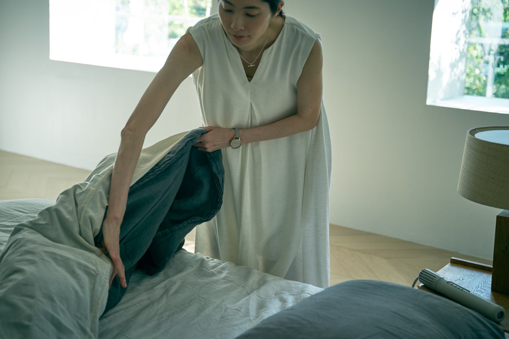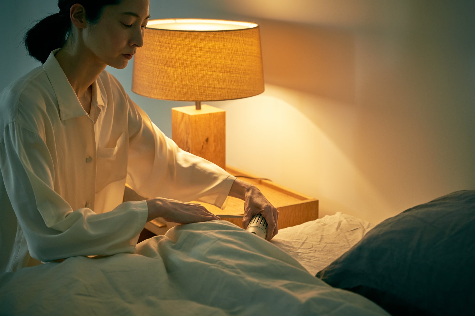 コンパクト&軽量なので、使用も収納も手間知らず。おでかけ前に挿し込んでベッドクリーニングとして、眠る前に挿し込んでナイトルーティンとして。忙しい毎日の中でも習慣化しやすく、365日あなたのライフスタイルに寄り添って快眠をサポートします。温度過昇防止装置搭載で安全性も徹底的に追求。マット塗装に柔らかなウォームグレーカラーは寝室に馴染みやすく、使わないときはベッドサイドに置いていてもインテリアの邪魔をしません。