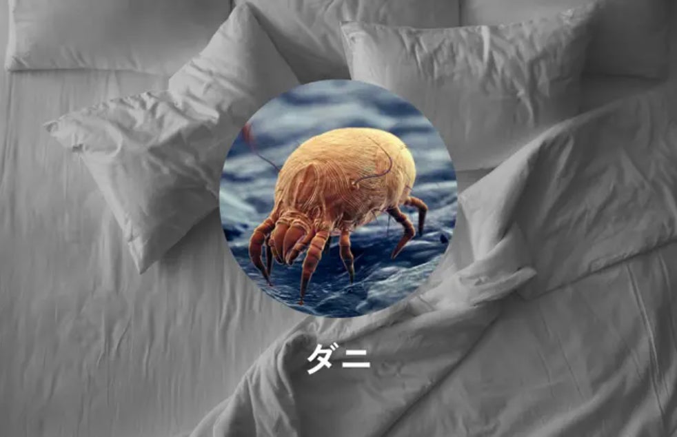 一般的にベッドには数百万〜数億匹のダニが住み着いていると言われています。毎日のベッドドライでダニ対策が可能です。
