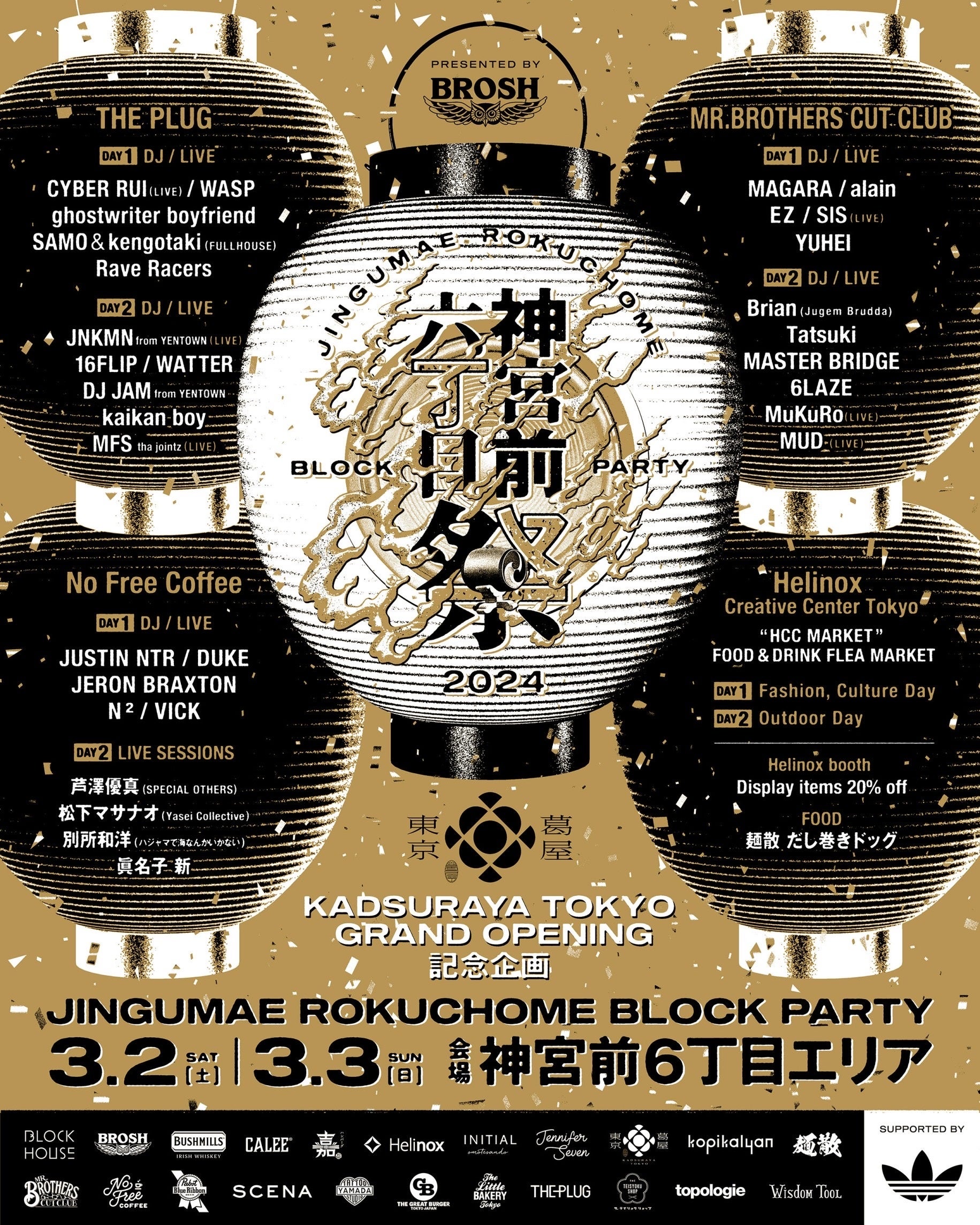 BROSH初のセレクトショップ『KADSURAYA 葛屋東京』のオープンを記念した“神宮前6丁目 BLOCK PARTY” が開催