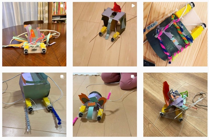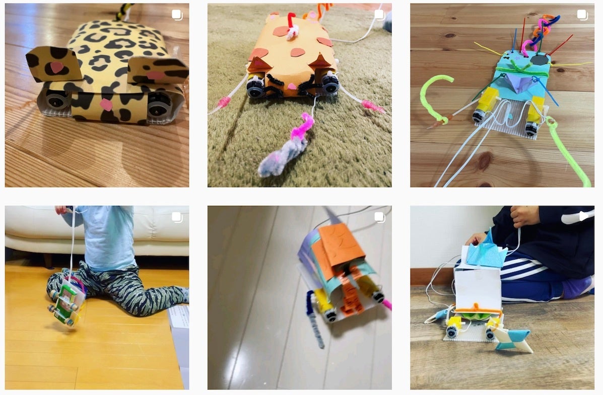 子どもたちは、「どうしたらもっと速く走れるか」「どんなデザインのロボットにしようか」など、たくさん試行錯誤を楽しんでくれました。その様子に関する投稿の一部を掲載します。