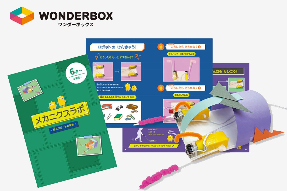 ワンダーラボ株式会社(本社:東京都文京区、代表取締役:川島 慶)は、 コミュニケーションロボットのBOCCOや教育キットシリーズのkurikitなどを提供するユカイ工学株式会社(本社:東京都新宿区、代表:青木 俊介)とコラボレーションし、 STEAM教育領域のトイ教材「メカニクスラボ」を制作いたしました。 本教材は、ワンダーラボが提供するSTEAM教育領域の家庭向け教育プログラム「ワンダーボックス」に含まれる教材で、ロボットの組み立てなどを通して観察力・発想力・創造力などを育むことを意図しています。