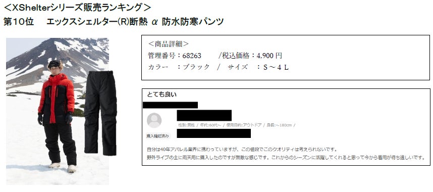 実際に購入されたお客様からは、「今年は購入できた!冬が楽しみ!」「機能の割に安すぎる」など本格的な冬が始まる前から既に高い評価が寄せられております。また、昨年の完売を知るリピーターやお客様がオンラインストアや店舗に来店されご購入いただいて口コミをSNSに投稿していただくことで、他のお客様が購入されるという好循環が生まれ販売数が伸長しております。