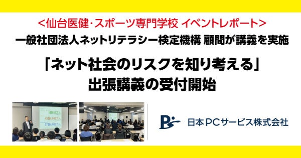 日本PCサービスが「ネット社会のリスクを知り考える」出張講義の受付開始 一般社団法人 ネットリテラシー検定機構 顧問による講義を実施