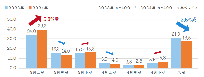 2024年 春の引越調査レポート 今年も昨年同様に、3月上旬に引越を行う傾向に