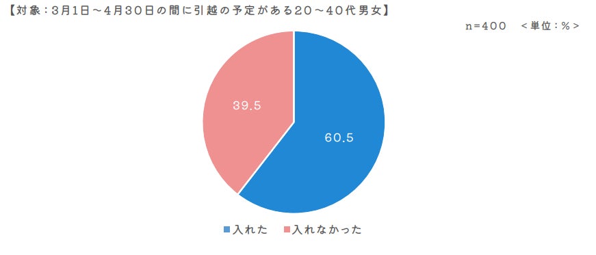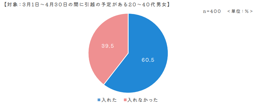 【対象:3月1日~4月30日の間に引越の予定があり、既に業者が決定していると回答した20~40代男女】