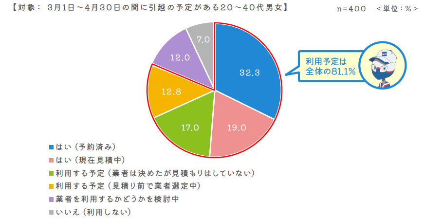 調査が2月上旬のため、今後人事異動に伴う転勤、入社の引越や受験後の学生の入学に伴う引越も発生することから、3月中旬から下旬にかけては例年並みに混雑することが予想されます。