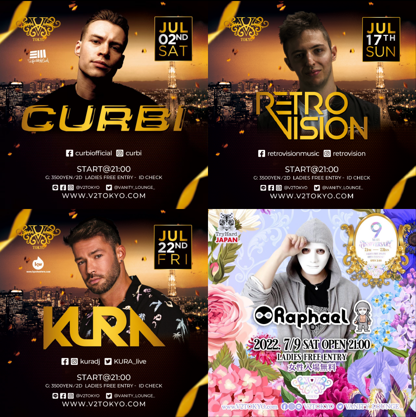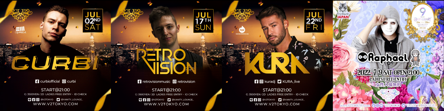 東京・六本木にあるナイトクラブ【V2 TOKYO】は、2022年7月に9周年を迎えます。イベント期間中は豪華アーティストの出演が決定!
