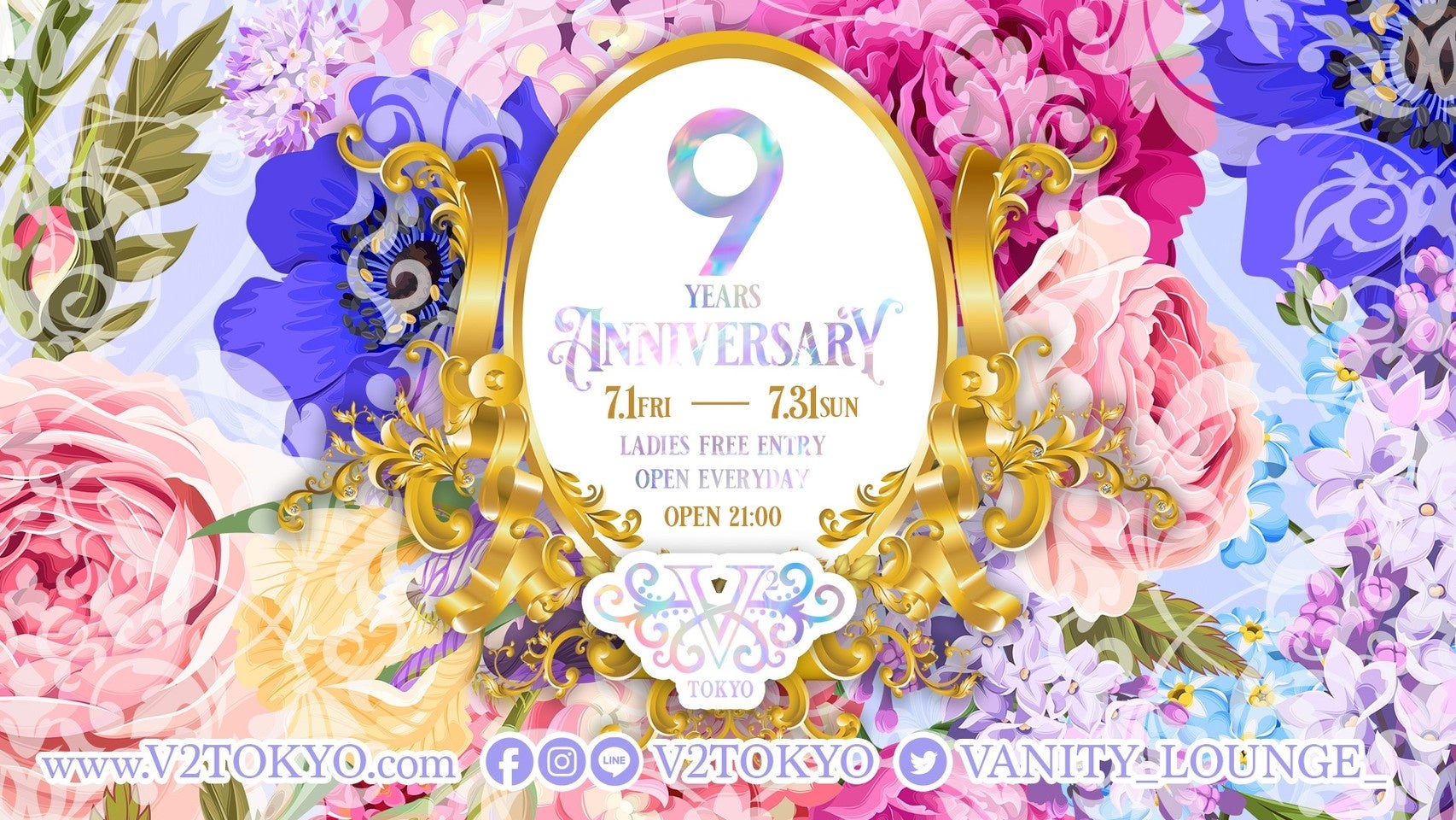 東京・六本木のナイトクラブ【V2 TOKYO】では、7月1日(金)から7月31日(日)の間、9周年イベント『V2 TOKYO 9th ANNIVERSARY』を開催いたします。