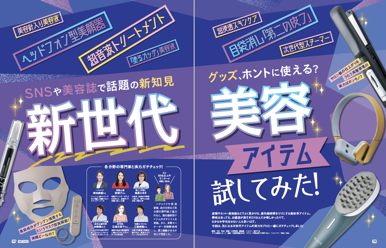 店頭やネット・美容誌などでよく見かける、最先端技術をウリにする美容系アイテム。興味はあっても、お値段が高すぎたりなんだか怪しかったりで、なかなか手を出せない人も多いはず。そこで、気になる次世代アイテムの実力をプロと一緒にチェックしました。