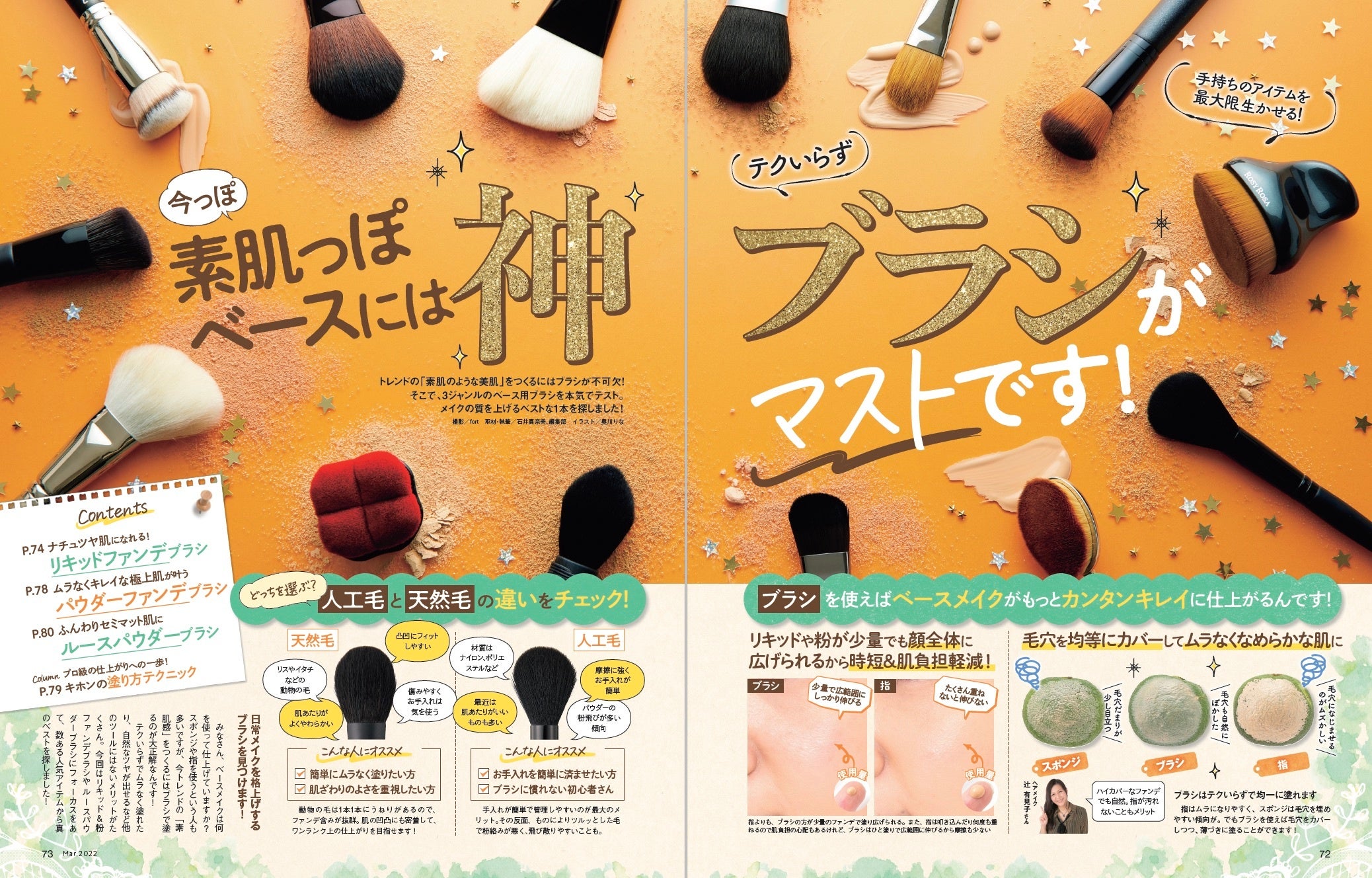 ベースメイクは何を使って仕上げていますか ? スポンジや指を使うという人も多いですが、今トレンドの「素肌感」をつくるにはブラシで塗るのが大正解なんです。テクいらずでムラなく塗れたり、自然なツヤが出せるなど他のツールにはないメリットがたくさん。そこで、3ジャンルのベース用ブラシを本気でテスト。メイクの質を上げるべストな1本を探しました。