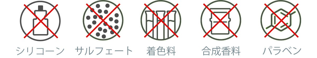 シリコーン、サルフェート、着色料、合成香料、パラベンを使用しない