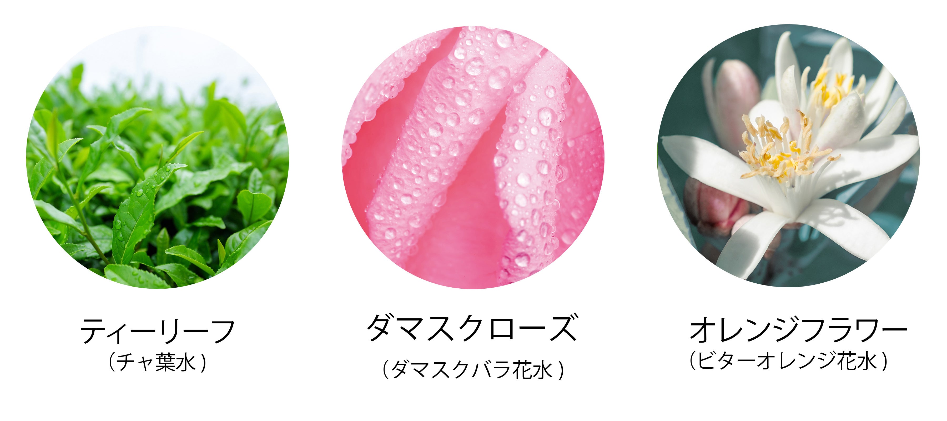 オーガニックのローズ&オレンジブロッサムウォーターがみずみずしさを与え、