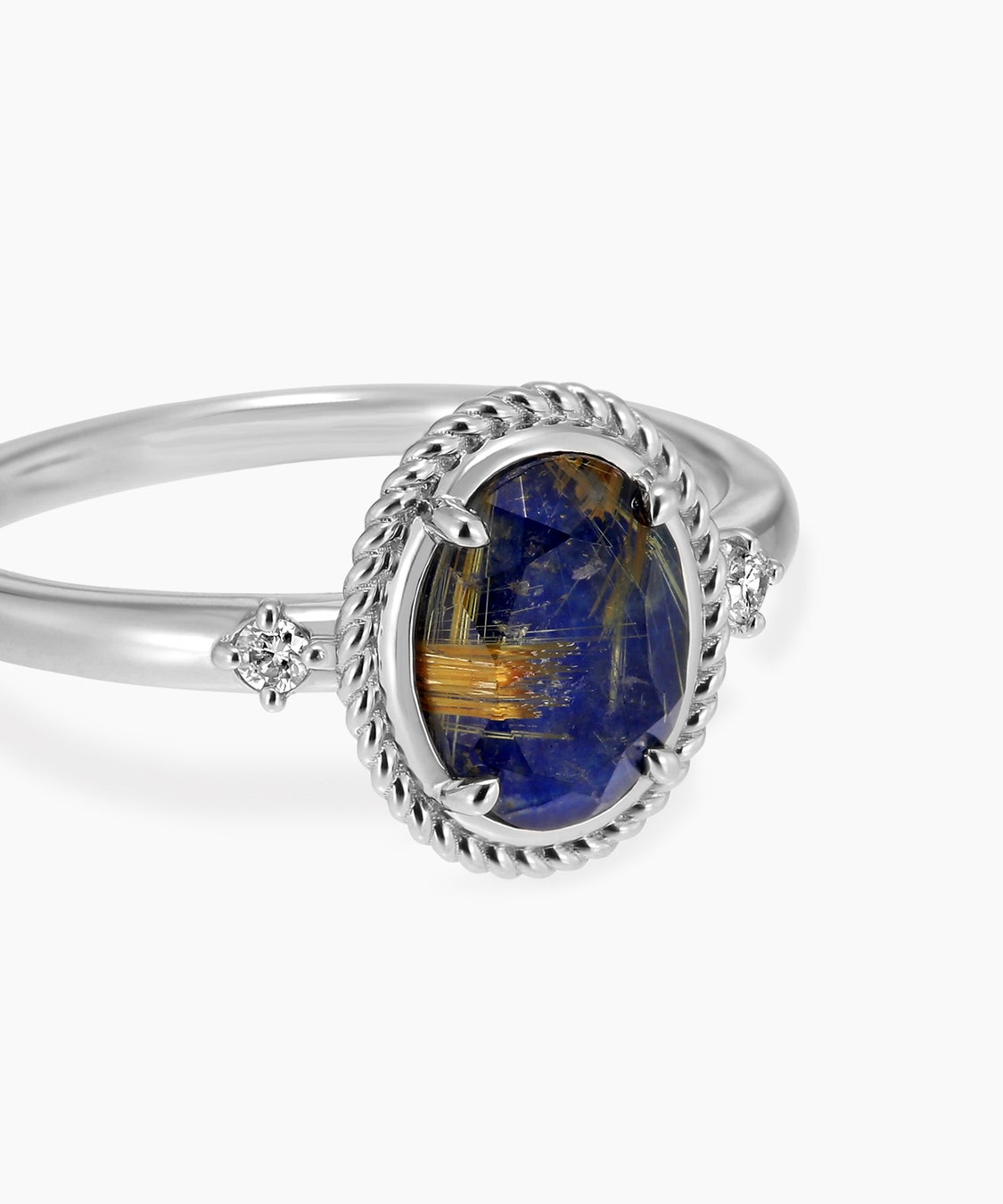 Pt950 ラピスラズリ×ルチルクォーツ/ダイヤモンド リング:99,000円