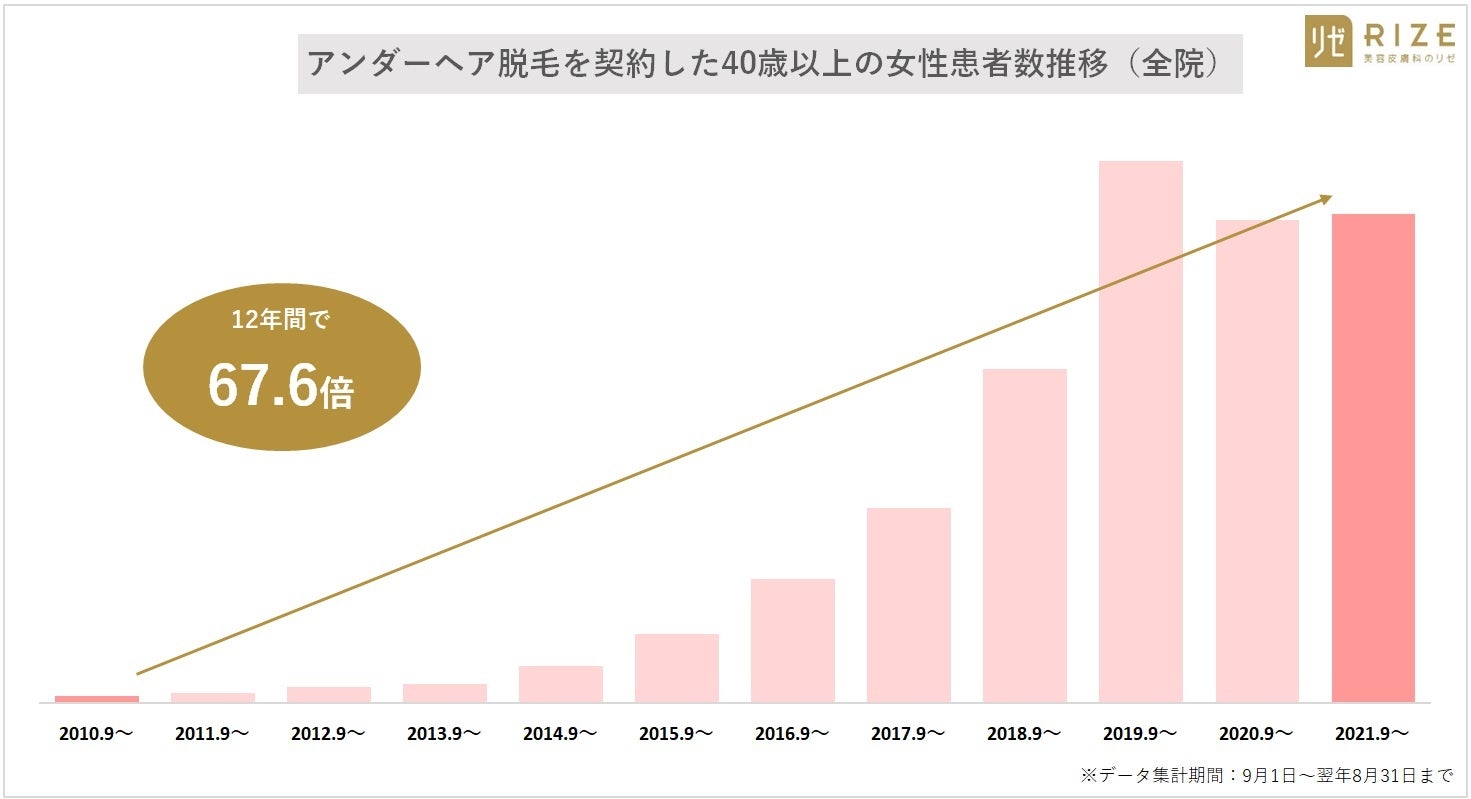 - アンダーヘア脱毛を契約した40代以上の男女患者数推移