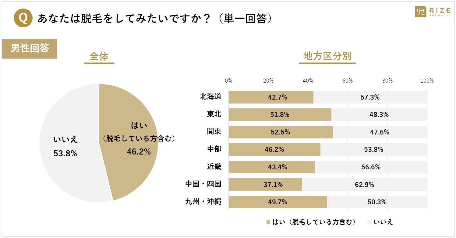 ・【男性:「脱毛したい」と回答の地域は?】1位「関東(52.5%)」、2位「東北(51.8%)」