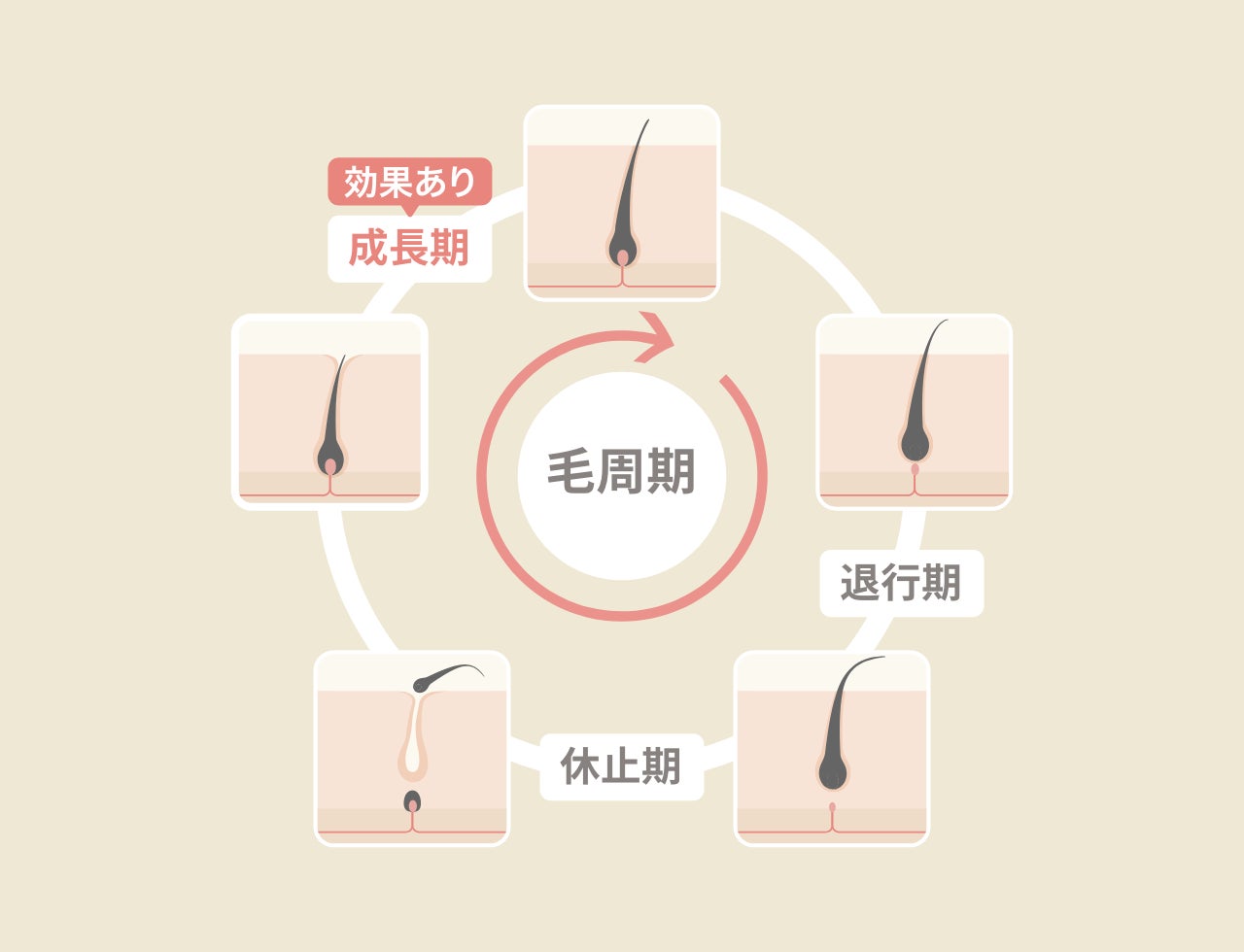 毛には【毛周期】といって、成長期→退行期→休止期を繰り返し、生えたり抜けたりしています。
