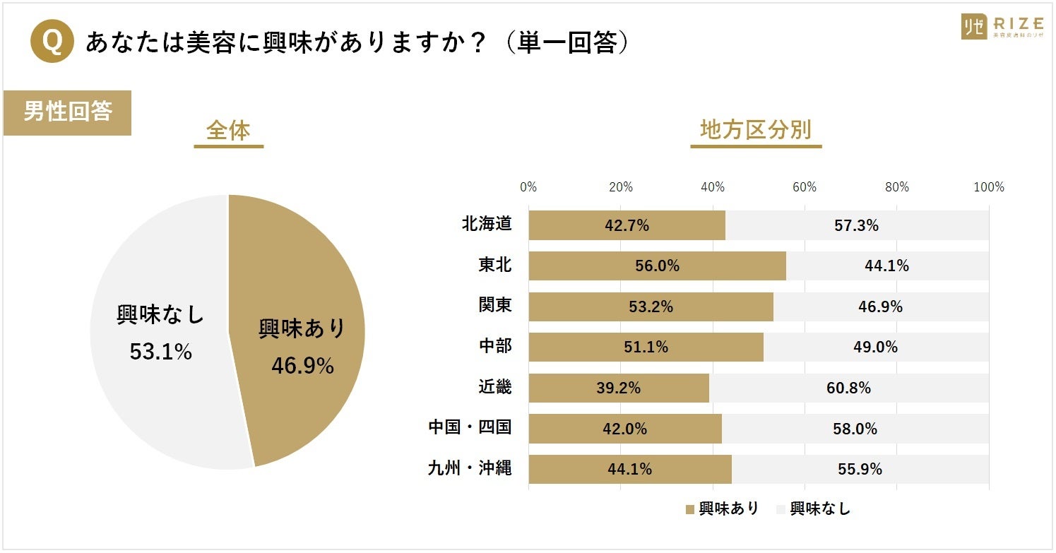 ・【男性:「美容」に興味ある地域は?】1位「東北(56.0%)」、2位「関東(53.2%)」