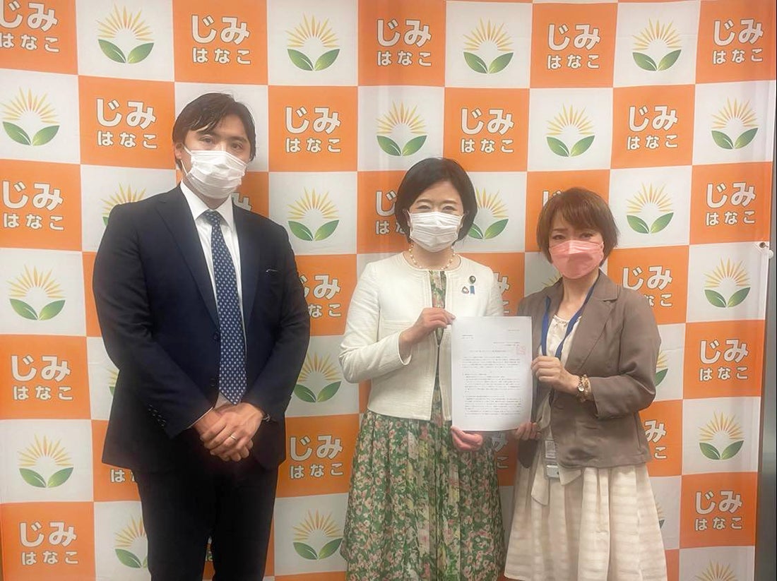 この度、当社と提携している日本シングルマザー支援協会の江成代表と共に、自見はなこ参議院議員へ要望書を提出いたしました。
