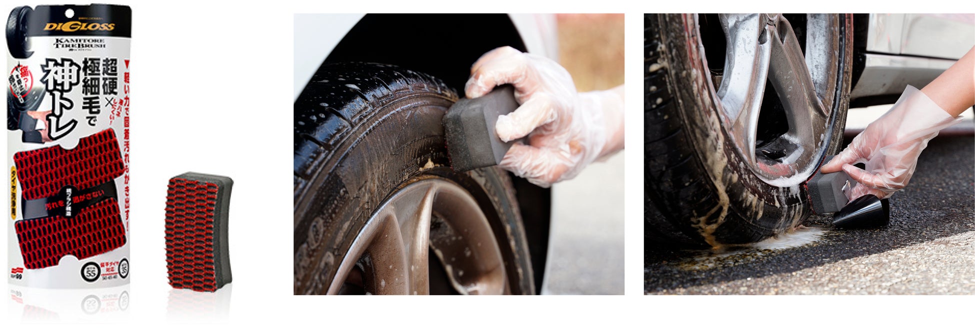 洗車の完成度を高めるための足回りクリーニングアイテムとして、今春発売いたしました『ディグロス 神トレ ホイール&タイヤクリーナー』を中心に、『ディグロス 神トレ ホイールスポンジ』『ディグロス 神トレ ホイールブラシ』『ディグロス 神トレ タイヤブラシ』と、「ディグロス」神トレシリーズをすべてラインナップしました。