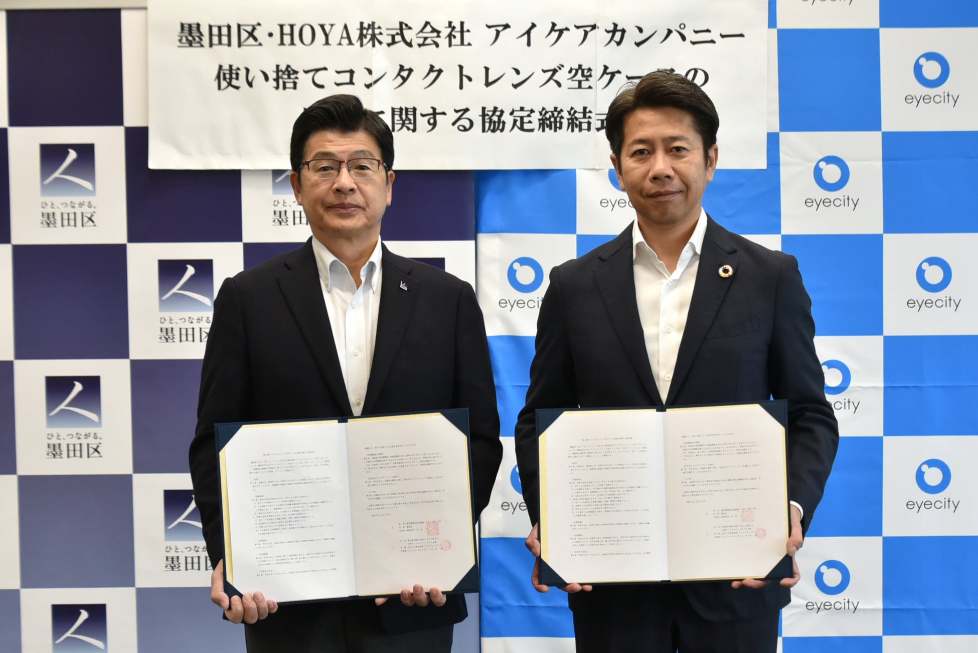 コンタクトレンズ専門店「アイシティ」を事業展開するHOYA株式会社 アイケアカンパニー(事業所在地:東京都中野区)は、2024年10月10日(木)に、東京都墨田区との『使い捨てコンタクトレンズ空ケースの回収に関する協定』を締結いたしました。