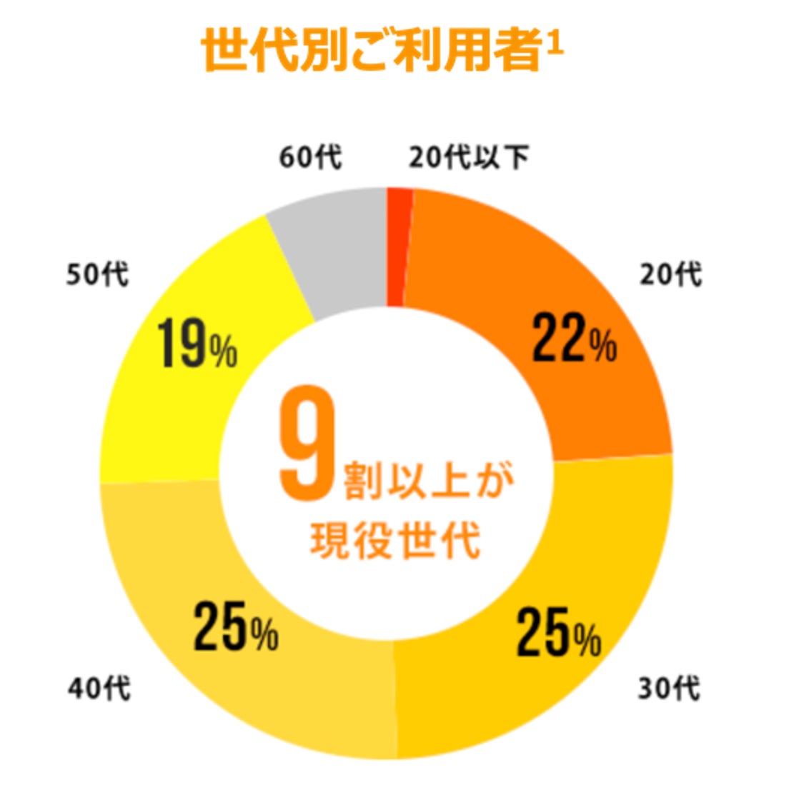 - アプリで簡単に始められ、無理なく続けられる機能が支持され、ご利用者の9割以上が20代〜50代の現役世代 *1