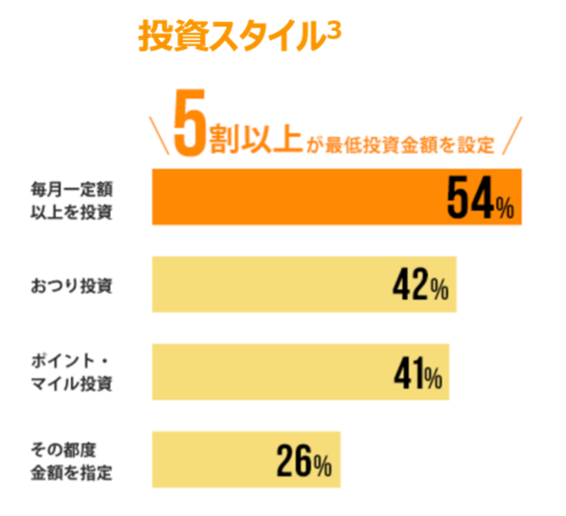- ご利用者の5割以上が最低投資金額を設定して一定額以上の積立投資を実践 *3