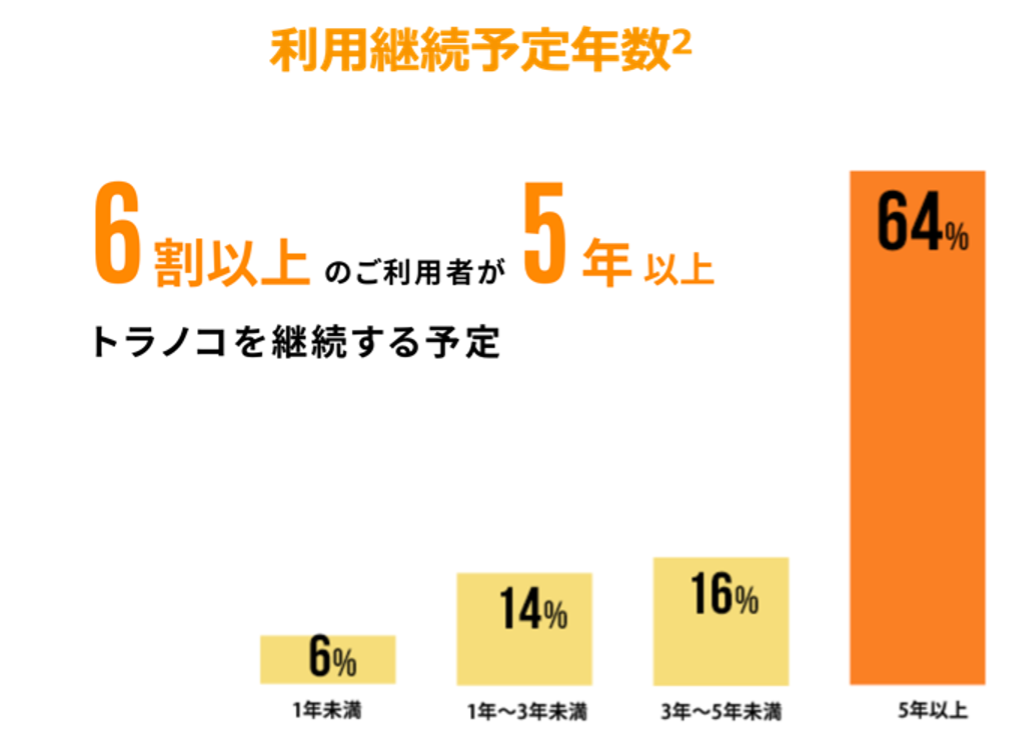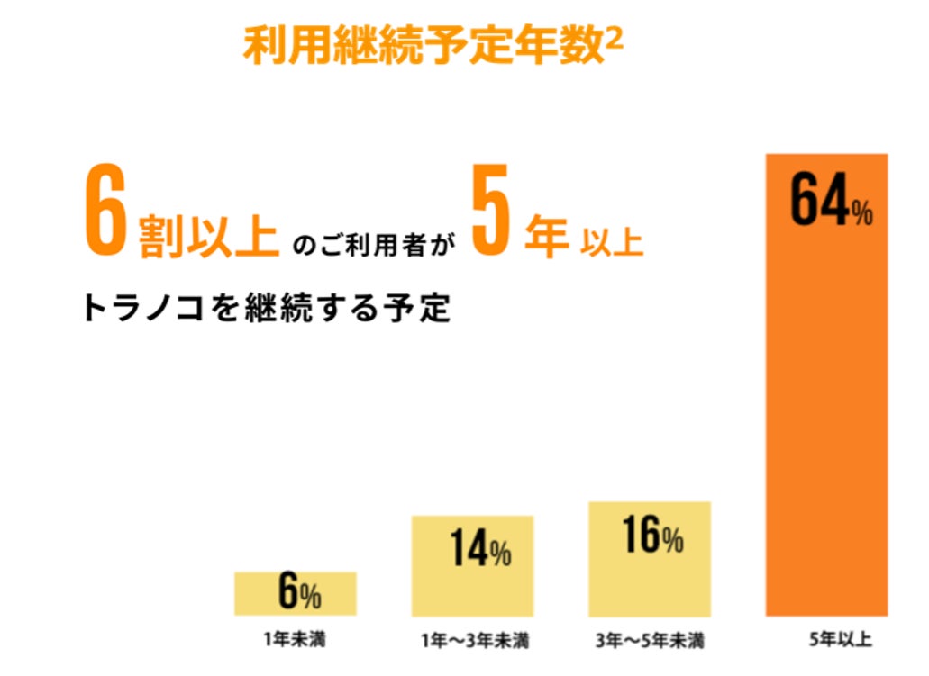 - トラノコのご利用者は、約6割が5年以上利用継続する予定の長期投資派 *2