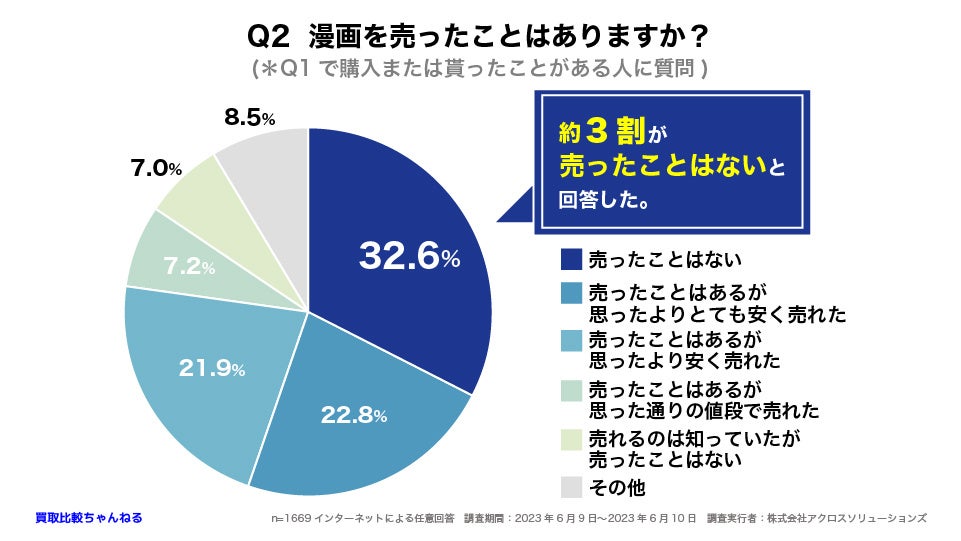 株式会社アクロスソリューションズと株式会社浜屋が共同運営している買取比較ちゃんねる(URL:https://www.hamaya-corp.co.jp/media )は、15歳〜60歳以上の男女2416人を対象に「漫画買取に関する意識調査」を実施しました。