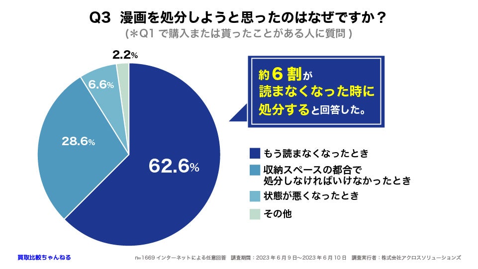 Q3 62.6%の人が「もう読まなくなったとき」に漫画を処分していることが分かりました。