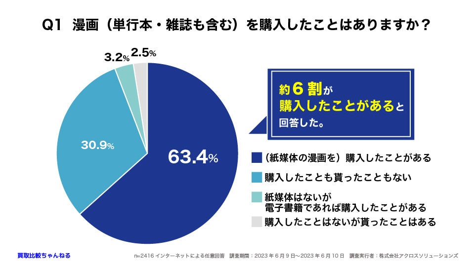 【2416人調査】漫画(紙媒体)を購入したことがある人は約7割〜漫画買取に関するアンケート〜