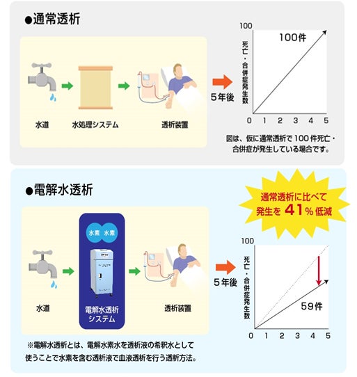 「電解水透析は血液透析患者の死亡・心脳血管合併症発症リスクを41%低減」