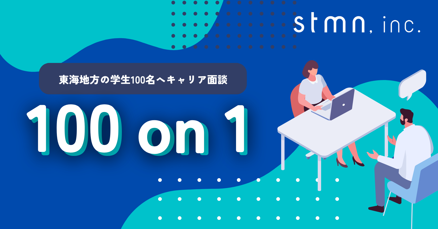名古屋本社の株式会社スタメン(本社:愛知県名古屋市 代表取締役社長:加藤 厚史 以下、スタメン)は名古屋を中心とした東海3県の大学生100名を対象に1on1面談などを通じた個別キャリア支援プロジェクト『100 on 1(ヒャクオンワン)』を10月より開始いたします。