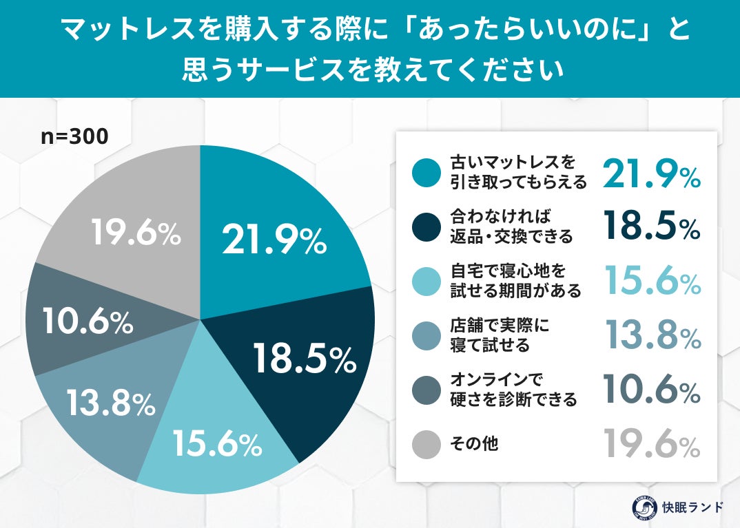古いマットレスを引き取ってもらえる:21.9%