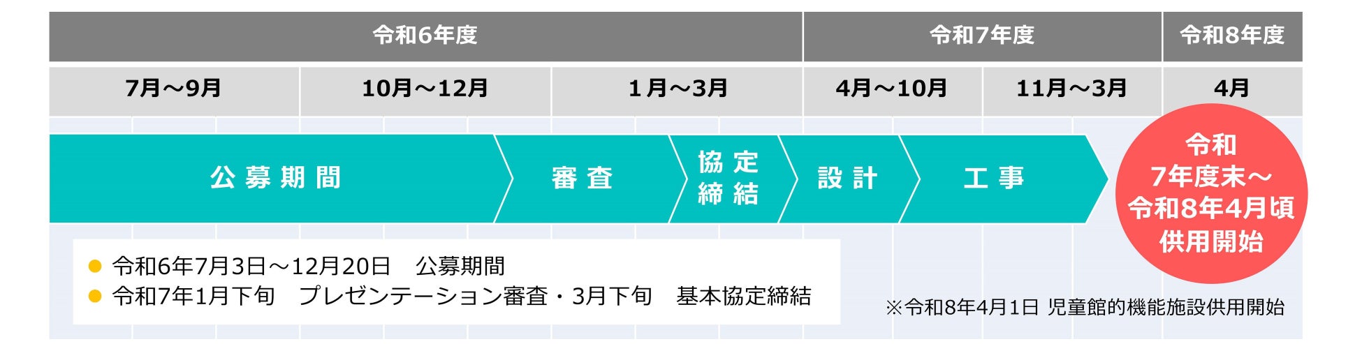 ・令和7年度中に児童館の解体及び新しい施設の建築工事を行い、令和8年4月に児童館的機能施設の供用開始というスケジュールを予定しております。