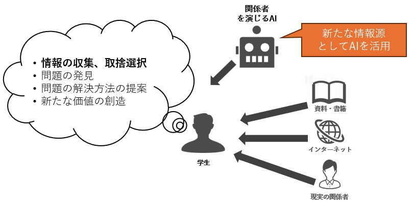 ChatGPTに代表される生成AI/大規模言語モデル(LLM)を用いたサービスの調査をしている中、その応用方法の一つとして、ChatGPTに特定の誰かを演じさせて当人の代わりに会話してもらうアイデアが上がりました。このアイデアにどの程度の実用性があるかを検証してみることとなり、実験を企画しました。実験では、大学の問題解決の演習において解決の鍵を握るキーパーソンをAIが演じ、どの程度効果があるかを検証しました。このような取り組みの中、情報システムの設計、開発、試験、運用を専門分野とされる宮城大学 事業構想学群の須栗裕樹教授とのご縁があり、本アイデアに関する共同研究を行うこととなりました。