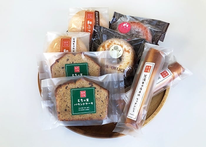 兵庫県北部に位置する新温泉町から地元で作ったおやつを中心に特産品を持ってきました。購入者には抽選で豪華賞品があたる企画も