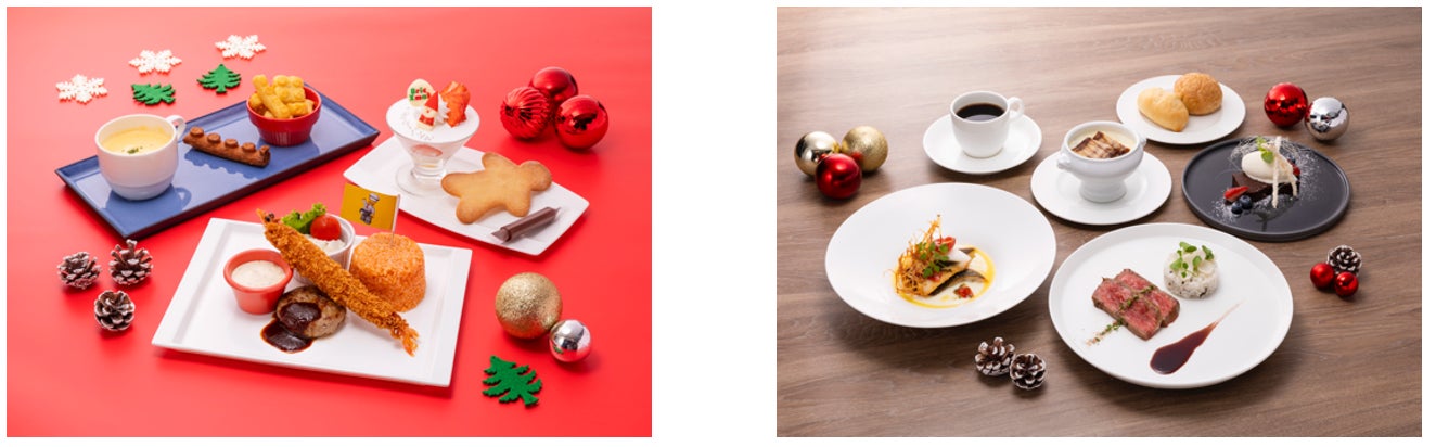 見た目も可愛らしいクリスマスケーキやスイーツ、冬にぴったりのホットメニュー、家族みんなで ワイワイ楽しめるフードメニューから親子で楽しめる本格コースメニューまで、特別なクリスマスの時間を美味しく彩る限定&新メニューを約30種類ご用意しております。
