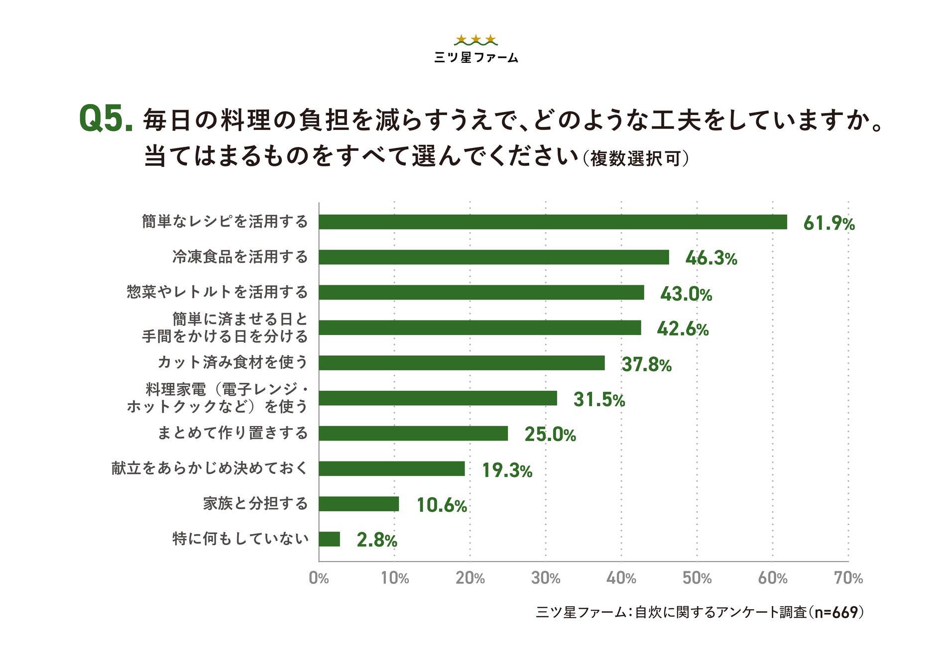 5:毎日の料理の負担を減らすうえで、どのような工夫をしていますか。当てはまるものをすべて選んでください(複数選択可)
