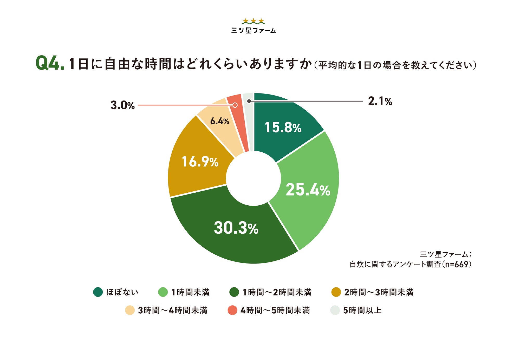 4:1日に自由な時間はどれくらいありますか(平均的な1日の場合を教えてください)