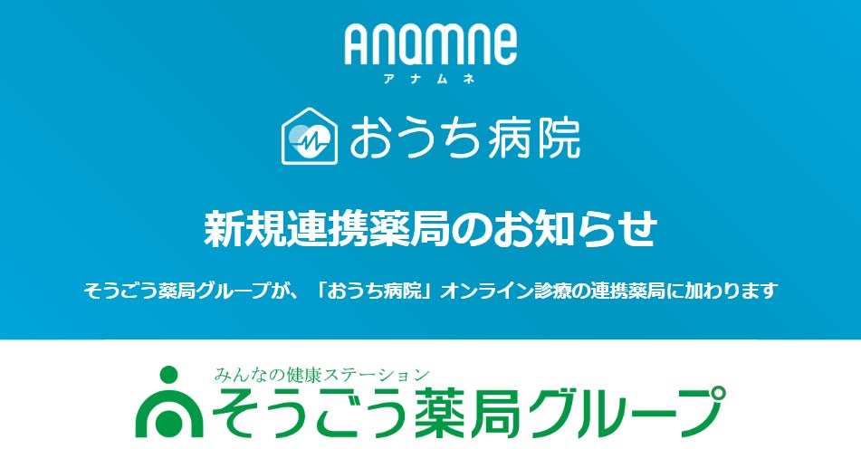 アナムネ、そうごう薬局グループと連携開始。「おうち病院」オンライン診療の連携薬局を拡大
