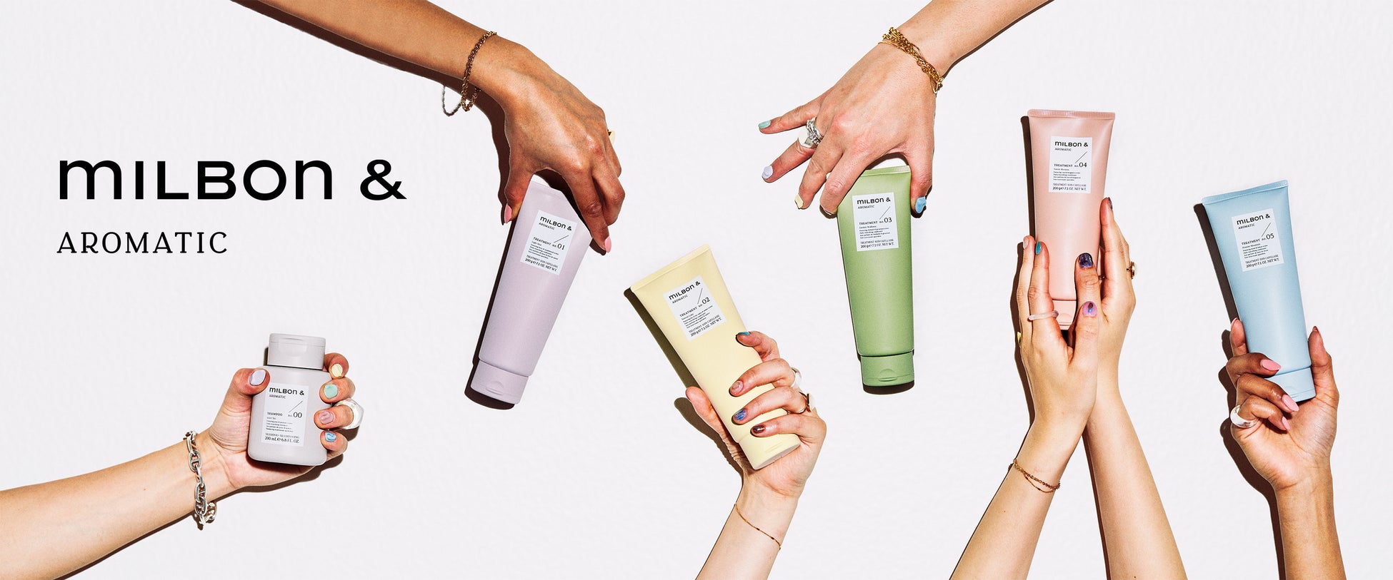 milbon & AROMATICは、シャンプー1種と香りの異なる5種のヘアトリートメントとヘアオイルで構成された、香りで選べるヘアケアシリーズです。ヘアケア商品購入時、SNS等で自ら商品情報を調べたりサンプルを試すなどして納得してから購入するという顧客が増えている背景を受け、「香りとパッケージ」を重要な選択基準と捉えている顧客が自身の気持ちに合わせて好きな香りを選べるよう、開発されました。美容室専売品ならではの品質と心躍る香り体験とを兼ね備えた商品です。