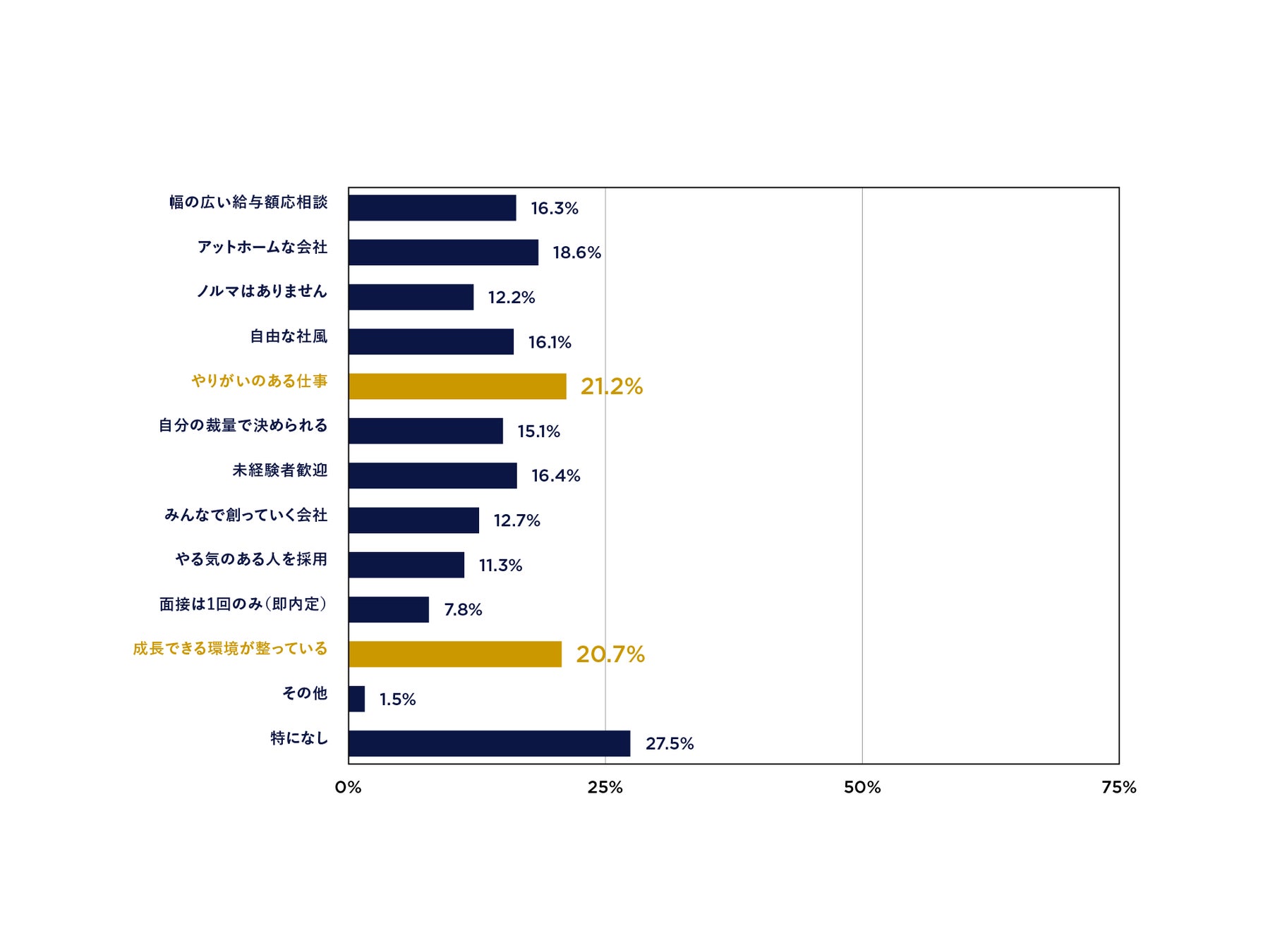 - 転職サービスを利用した際、うたい文句と実態が違ったのは「やりがいのある仕事」と「成長できる環境」