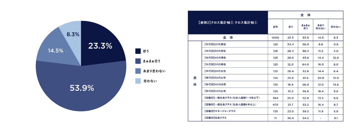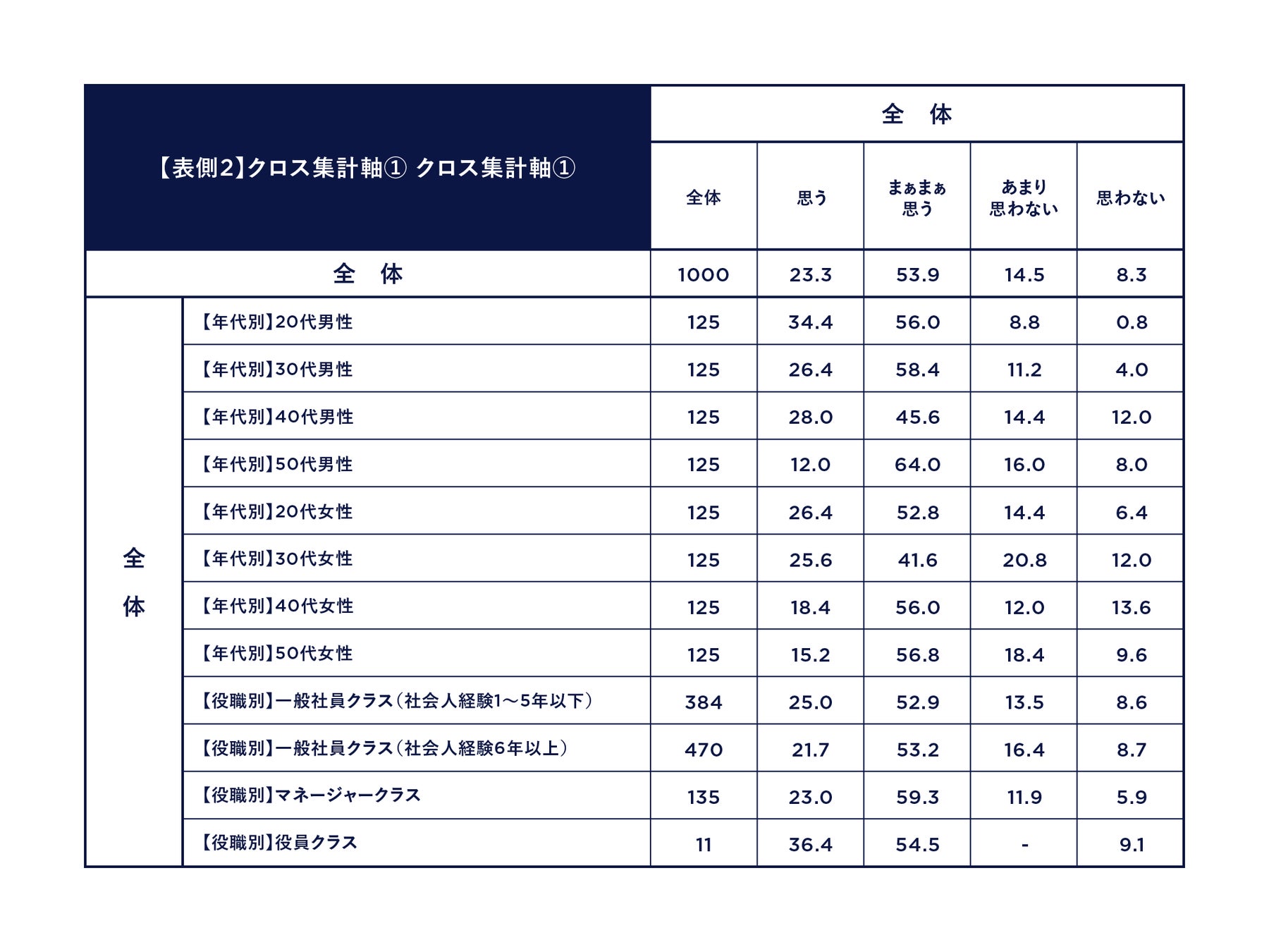 Q.勤務先の企業に対して「満⾜」していると思いますか。 n=1000 回答は1つだけ