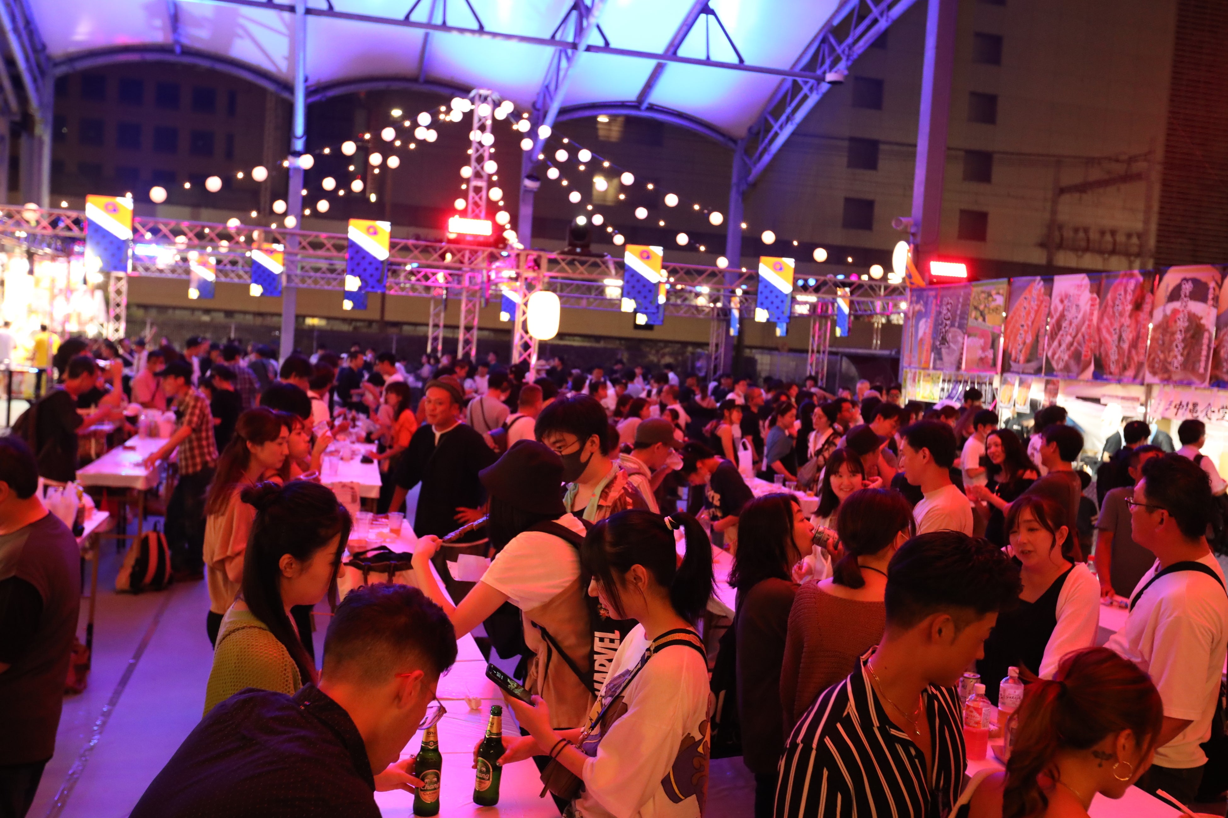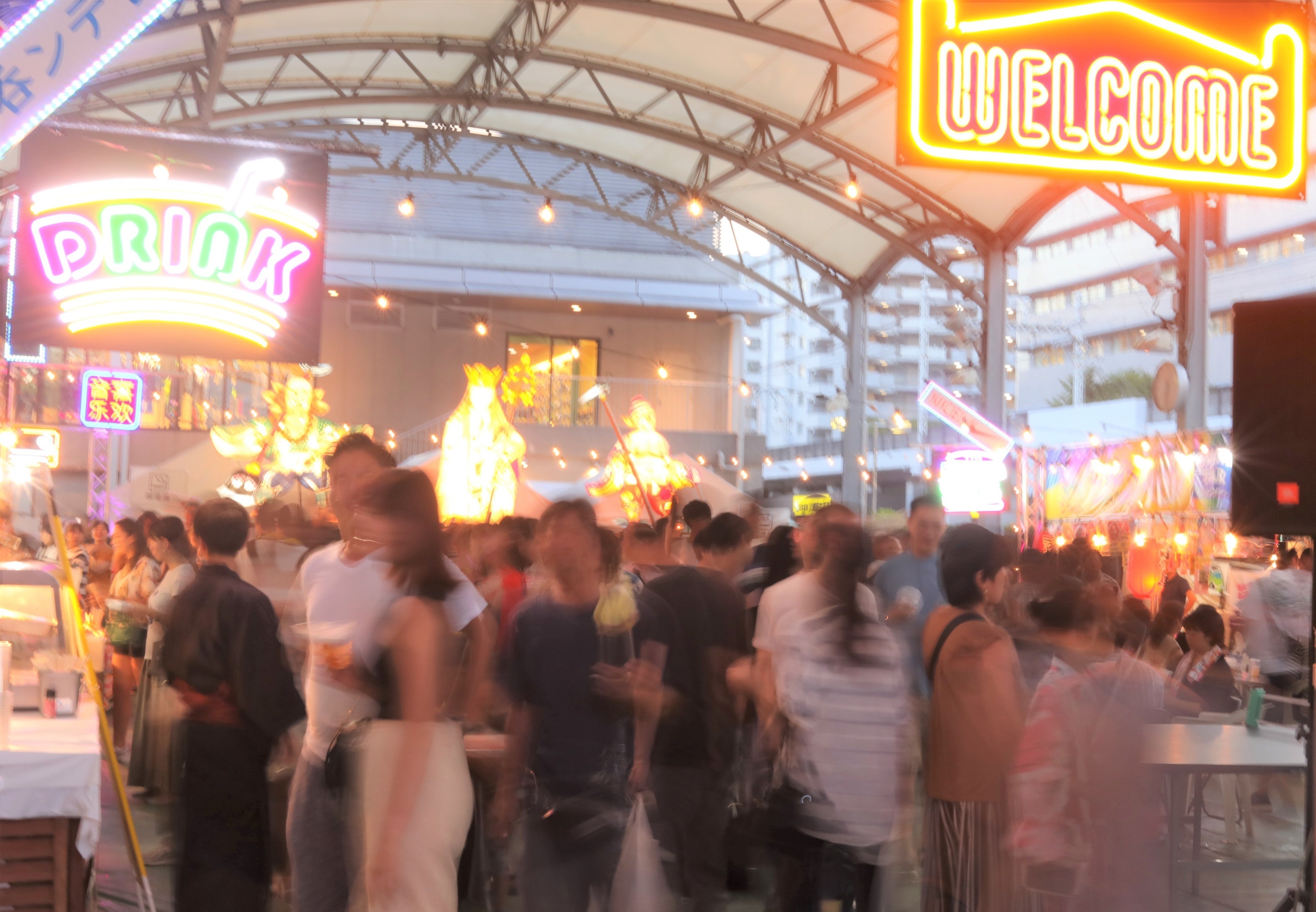 世界中の観光地で人気のナイトマーケットと、日本の夏祭りの屋台グルメや遊戯を融合させた『CITTA’の夏祭り』オリジナルの『夜市 (YOICHI)』 は、約70店の屋台がずらりと並び、世界各国の人気メニュー約100種類や日本の屋台の定番メニュー、射的や型抜きなどの遊戯もお楽しみいただけます。アジアのナイトスポットを彷彿とさせるポップな ネオン装飾の下、活気に満ちあふれた会場は、まるで異国にいるかのような幻想的な雰囲気を体験いただけます。