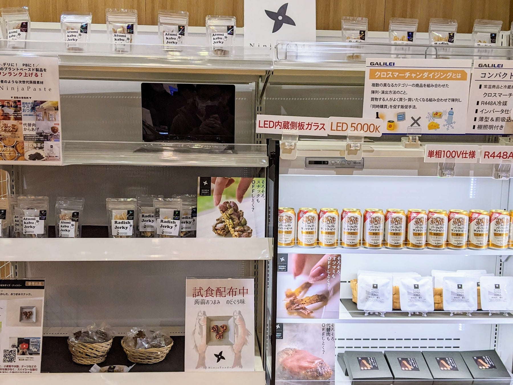 【NinjaFoods】スーパーマーケット・トレードショー2023に登場。フクシマガリレイ社のブース内で、超ヘルシーな次世代オツマミやジャックフルーツバーガーの試食提供を実施。