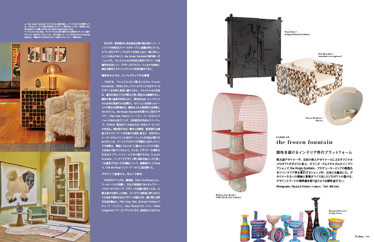 実力派デザイナーや、注目の新人デザイナーらによるオリジナルプロダクトがずらりと並ぶ、オランダ・アムステルダムのインテリアショップ、the frozen fountainが日本にも誕生しました。プロダクトの数々は、デザインとアートの境界線を取り払うような個性派ぞろいです。