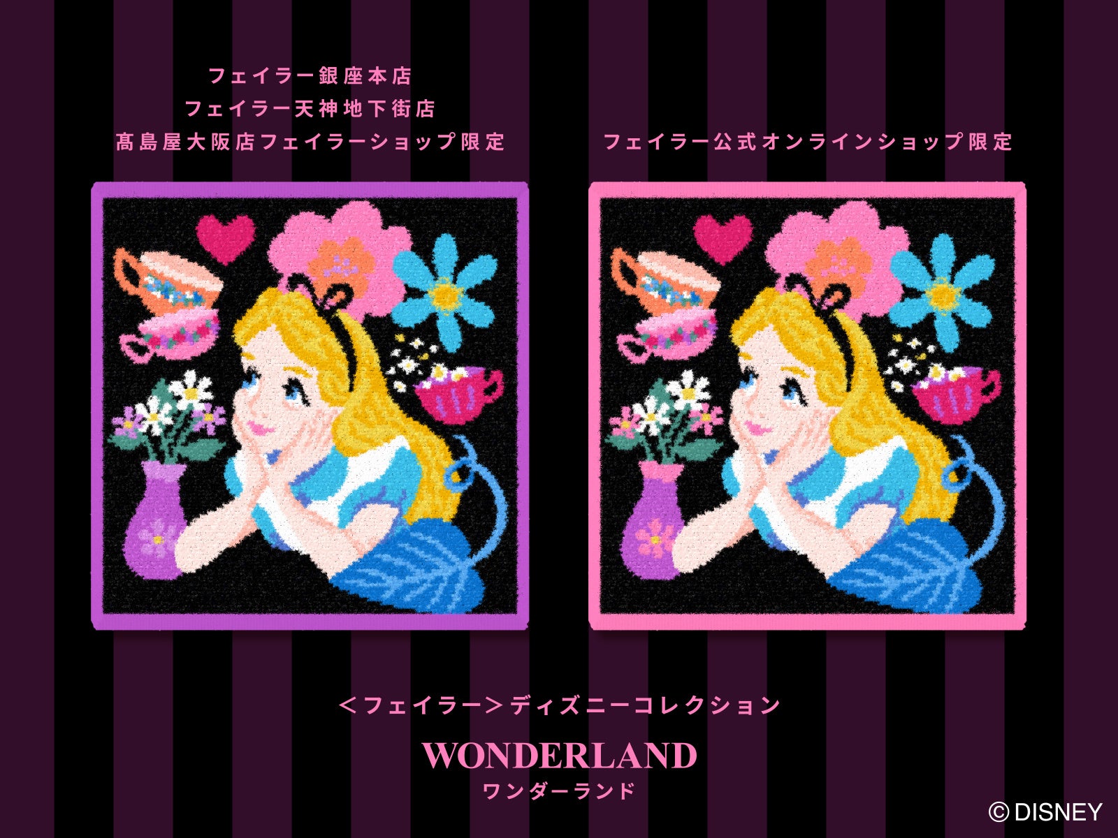 2023年10月3日(火)<フェイラー>ディズニーコレクションのハンカチふしぎの国のアリスのデザイン『ワンダ-ランド』を旗艦店・オンラインショップにて発売
