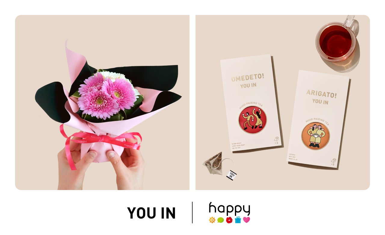 YOU INがフラワーショップ happyとコラボ!パリ発のフラワーショップが花言葉をもとに提案するブーケとティーレターのギフトセットを3月1日から期間限定で販売開始!
