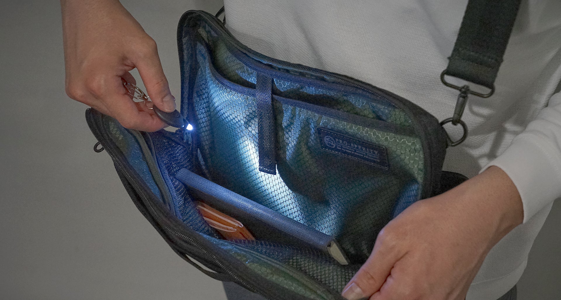 さらに、夜間や薄暗い場所でも荷物が探しやすくなるLEDライトを内蔵
