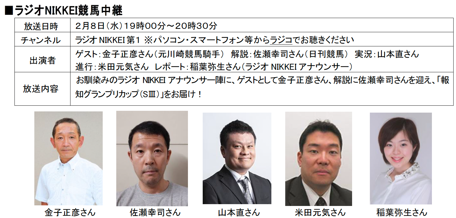 「報知グランプリカップ(SⅢ)」〔2月8日(水)〕「ハートビートレイン(準重賞)」〔2月7日(火)〕